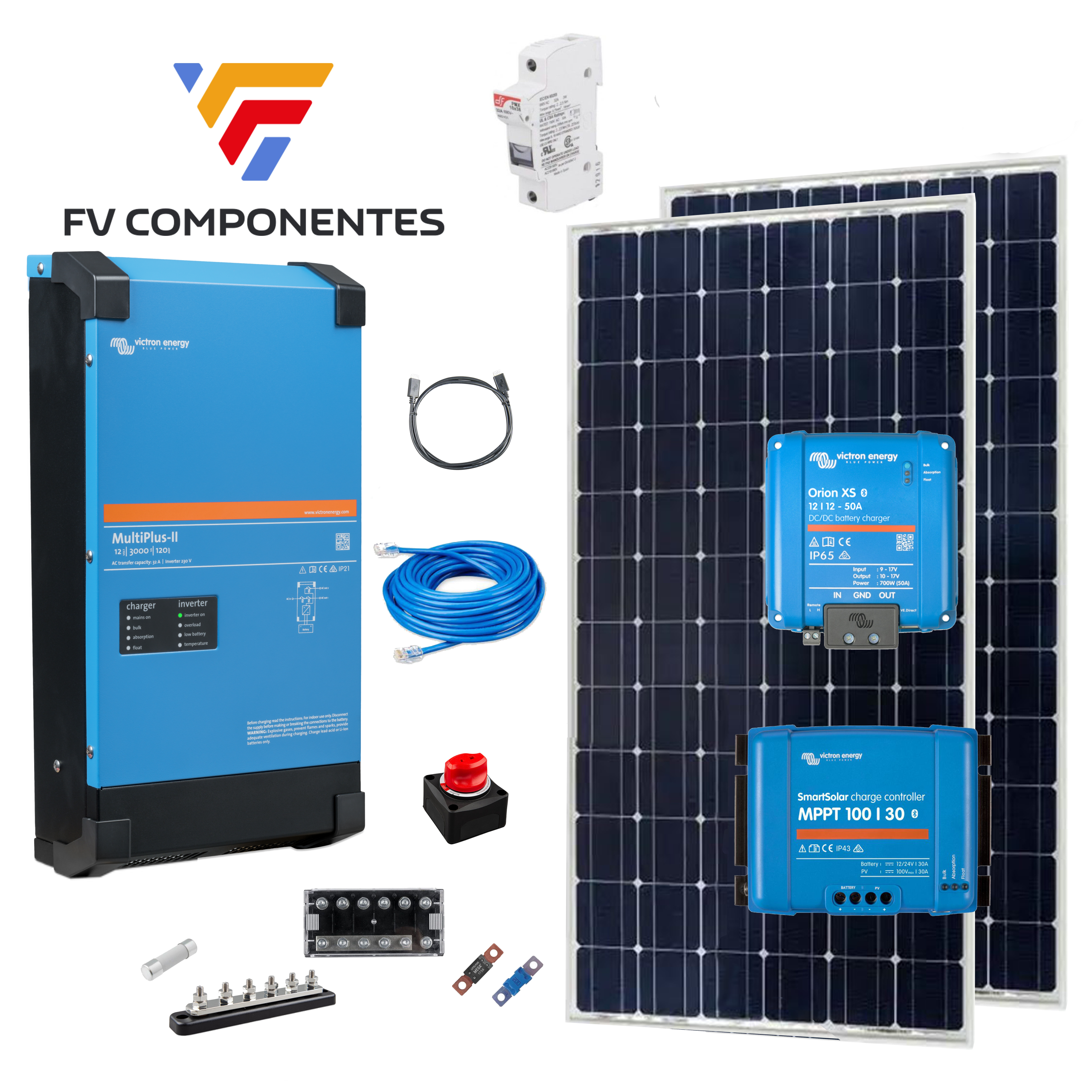 Wechselrichter und Batterieladegerät Victron Multiplus II 12V und 3000w, mit dem Sie alle elektrischen Geräte, die Sie in Ihrem Van oder Wohnwagen haben, mit Strom versorgen können. Da es sich um ein Ladegerät handelt, können Sie es auch auf einem Campingplatz oder in einer Garage anschließen, um die Lithiumbatterie maximal aufzuladen.