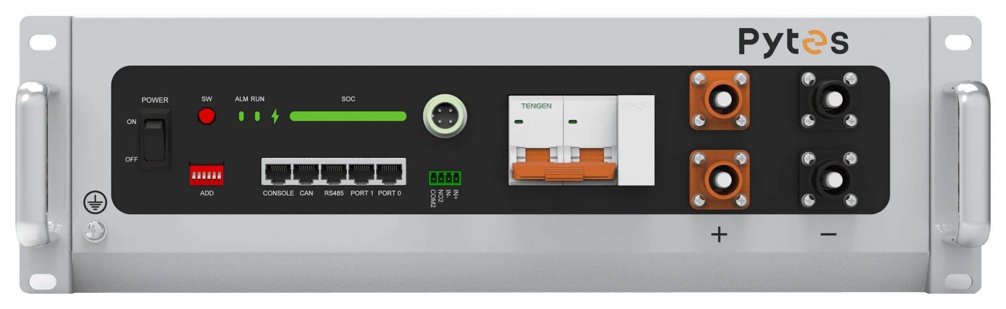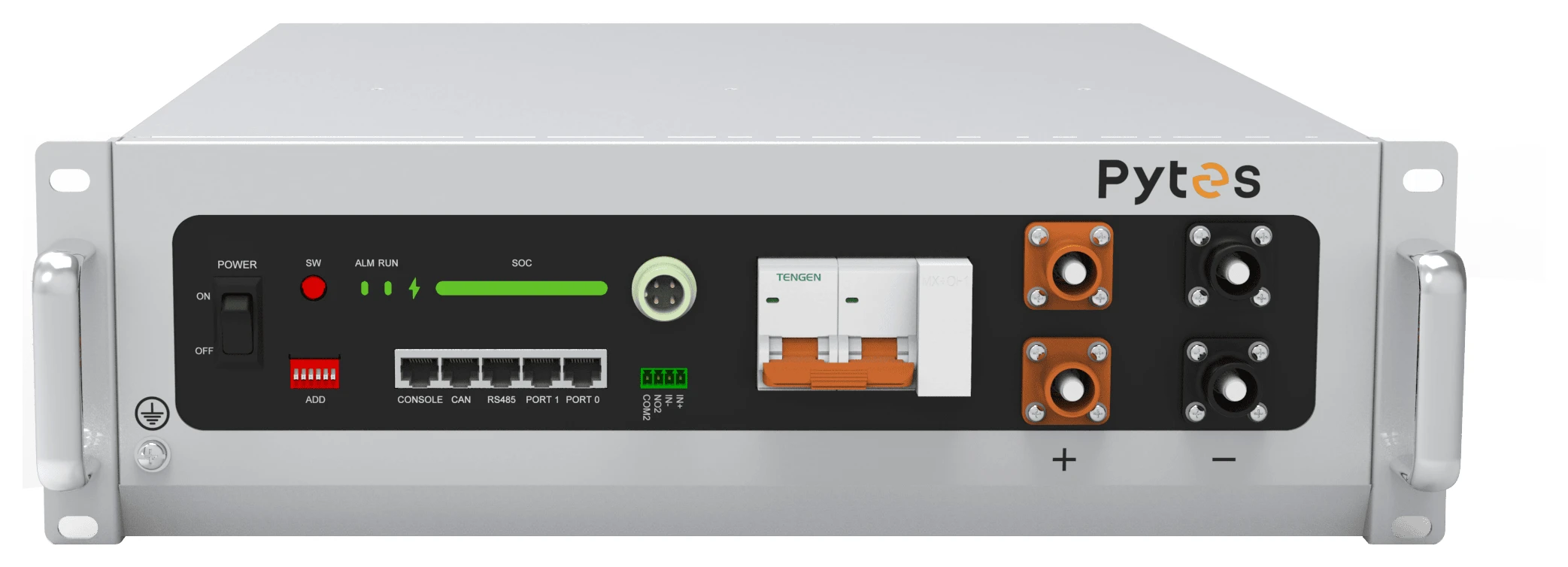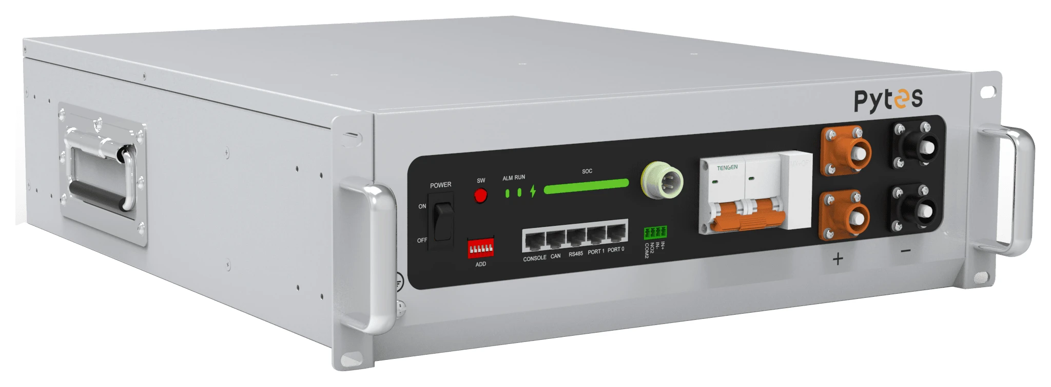 Pytes' V5α PLUS is a high-tech lithium-ferrophosphate (LiFePO₄) battery module, offering very long life, high cycling resistance, industrial-grade safety, plug-and-play expansion and excellent performance.