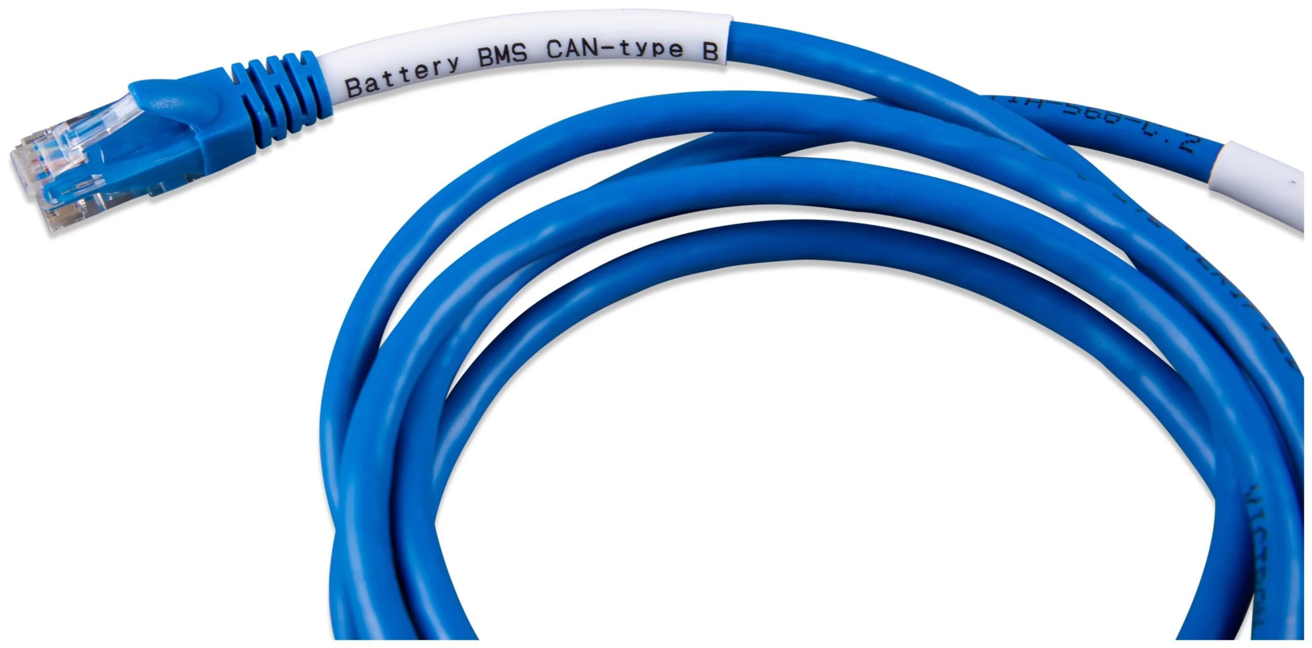 - Utiliza el cable Victron de VE.Can a CAN-bus para BMS tipo B 1,8m para conectar una batería habilitada para CAN-bus, de otra marca que no sea Victron, a un sistema Victron.