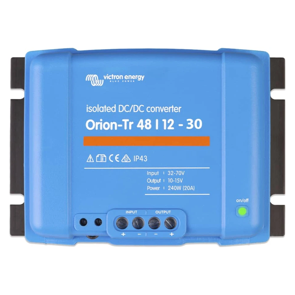 El convertidor Victron Orion-Tr aislado 48/12 30A 360W – ORI481240110 estabiliza la tensión de corriente continua procedente de una fuente de alimentación o batería y obtiene una tensión mayor que la de entrada.