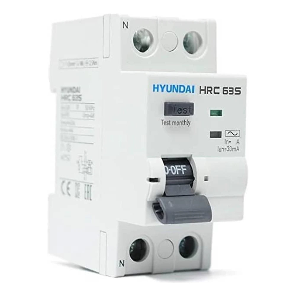 El diferencial 2P 40A 30mA Tipo A Hyundai – HRC63S-F2PG4040 pertenece a la serie HRC de interruptores diferenciales, tiene una clasificación que varía entre 16 A y 100 A. Esta gama ofrece diversas características, como una capacidad de interrupción de cortocircuito condicional de 6 kA en todo su rango, conforme a la norma IEC/EN 61008-1.