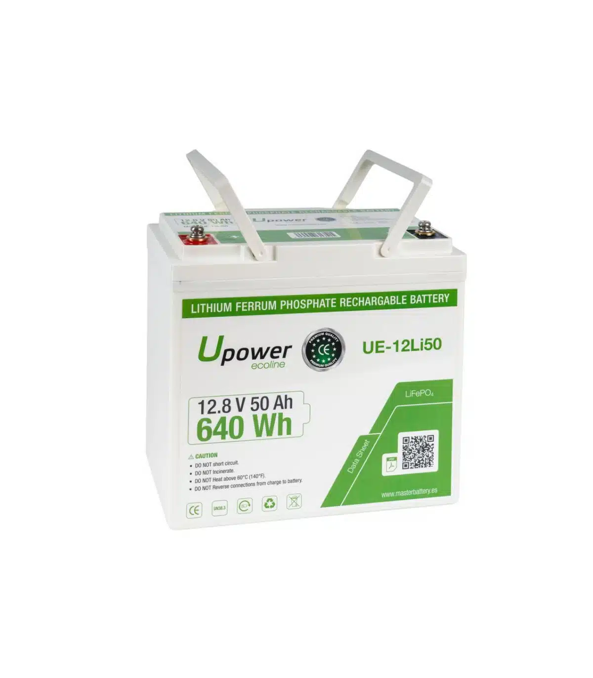 A bateria Upower 12,8 V / 50 Ah é um monobloco de alto desempenho, concebido para fornecer uma solução de armazenamento de energia eficiente, duradoura e segura.