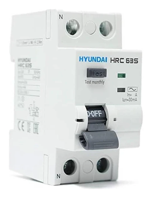 O disjuntor diferencial residual Hyundai - HRC63S-F2PG4040 2P 40A 30mA Tipo A pertence à série HRC de disjuntores residuais de corrente, com uma gama de potências nominais de 16 A a 100 A. Esta gama oferece várias caraterísticas, tais como uma capacidade de interrupção de curto-circuito condicional de 6 kA em toda a sua gama, em conformidade com a norma IEC/EN 61008-1.